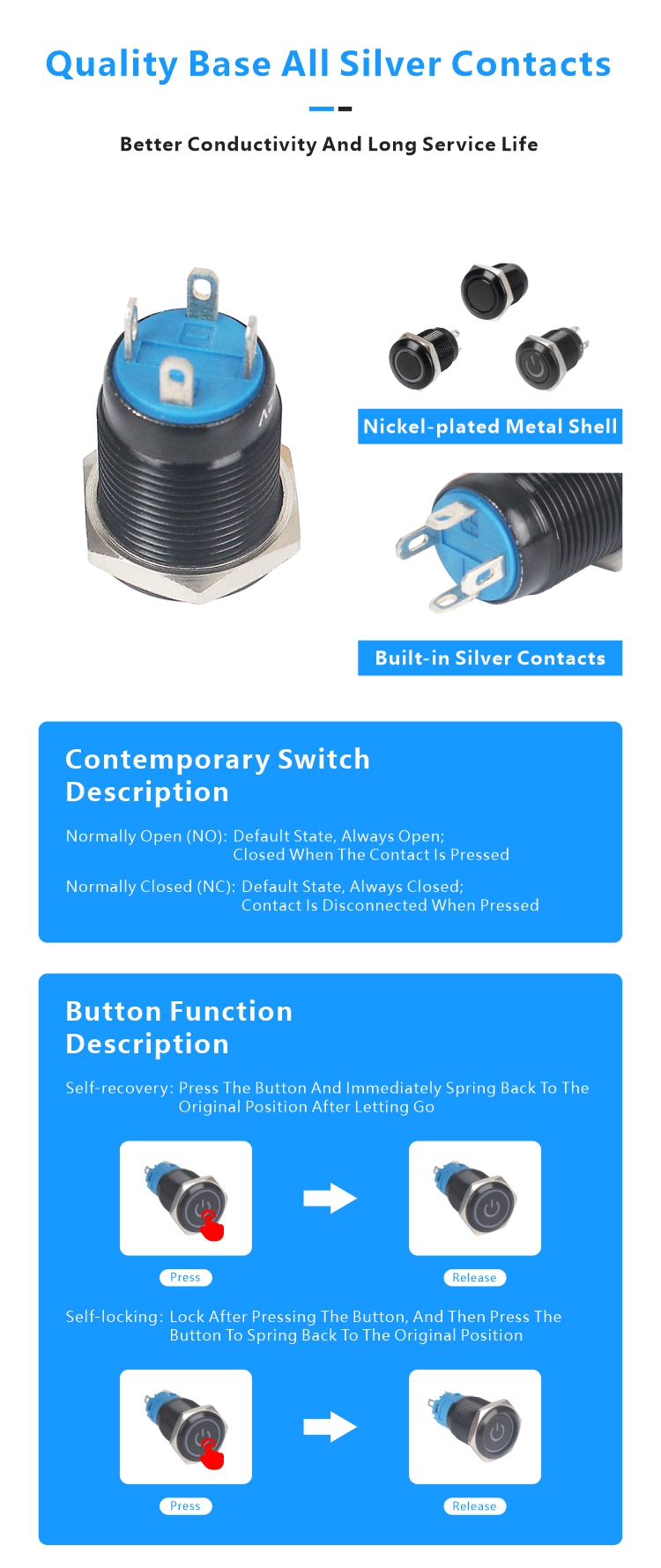 6.Mechanical life: up to 600,000times,it can work at -20℃~55℃;