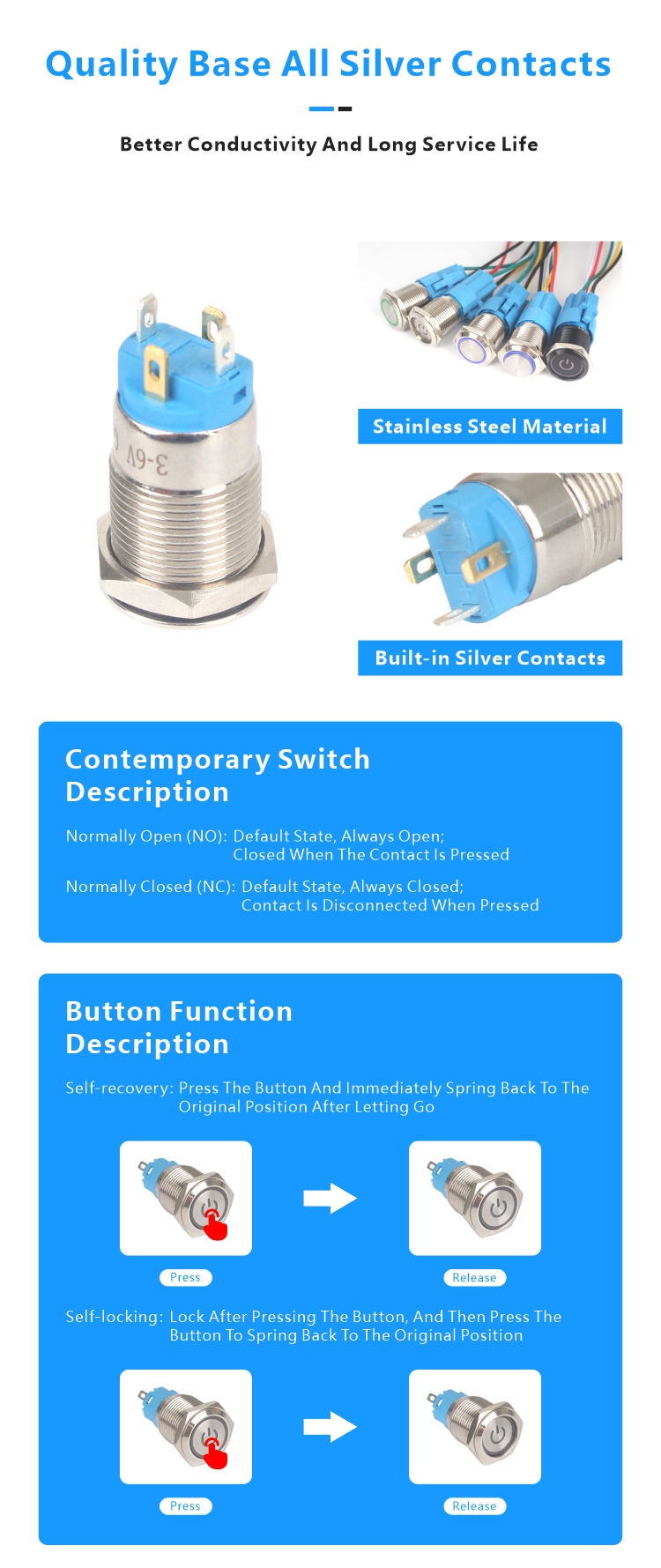 6.Mechanical life: up to 600,000times,it can work at -20℃~55℃;