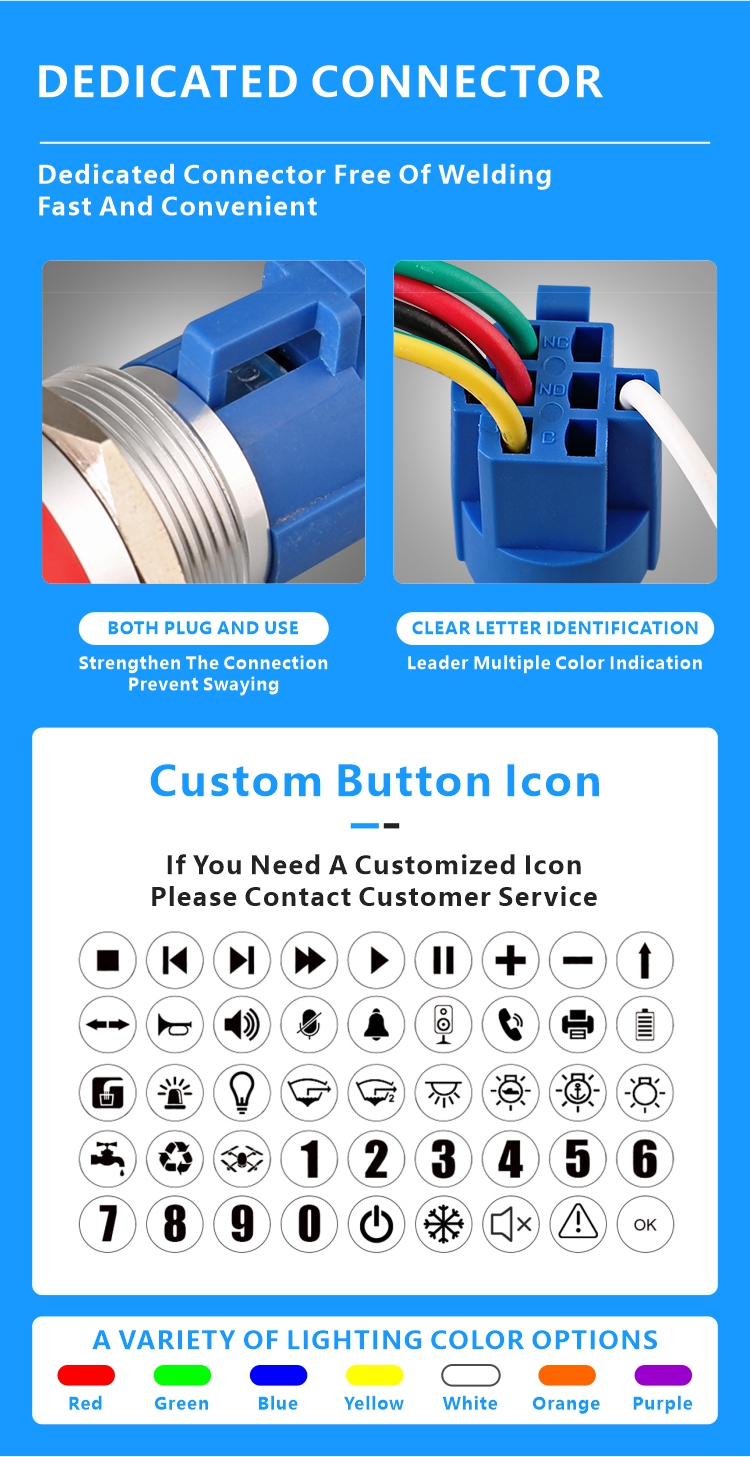 Button colors and LED illumination colors are customizable. Custom patterns can be incorporated to enhance functional indicators;Mechanical life exceeds 200,000 cycles, electrical life exceeds 100,000 cycles, ensuring long-term reliable operation.