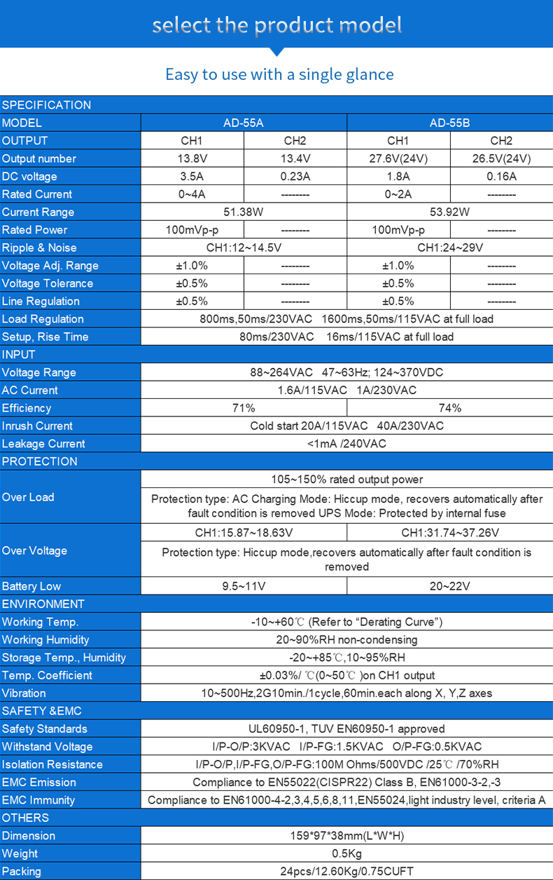 155W Dual Output with Battery Charger (UPS Function) ADD-155 series