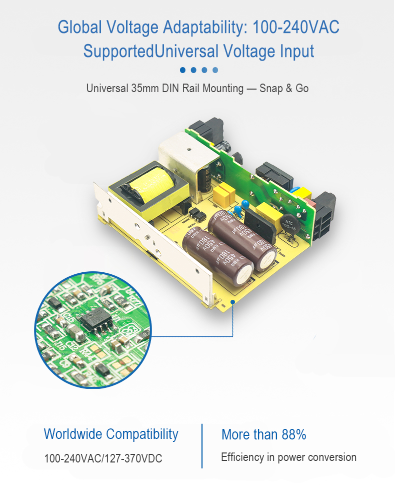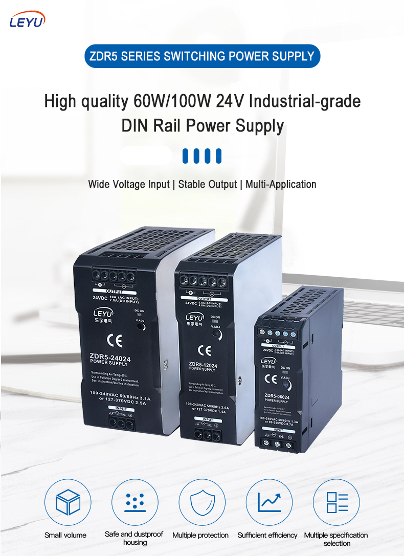 ZDR5 is a DIN Rail power supply series with an economical price and slim design. Like other LEYU’s DIN Rail series, they can be mounted on a TS35 Standard DIN rail.