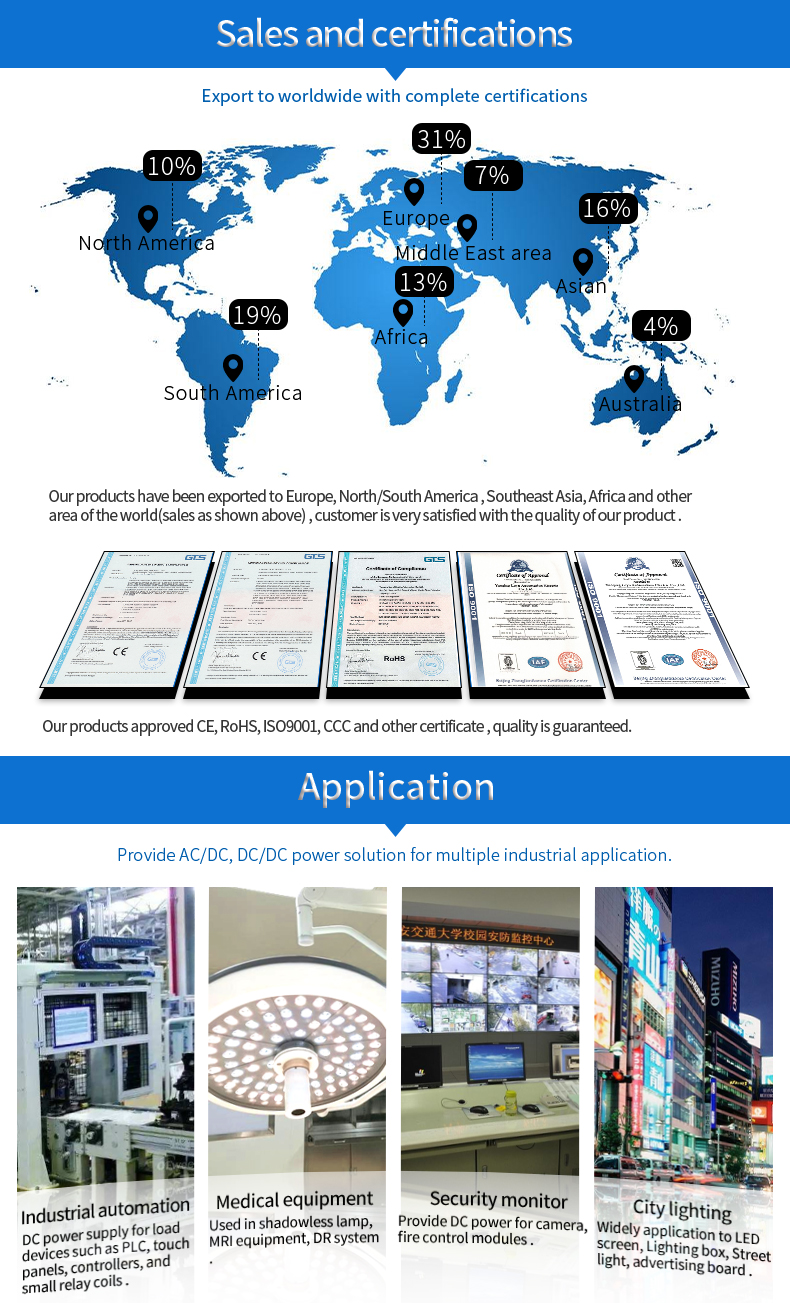 2.Ripple & noise are measured at 20MHz of bandwidth by using a 12” twisted pair-wire terminated with a 0. 1μ & 47μ parallel capacitor.