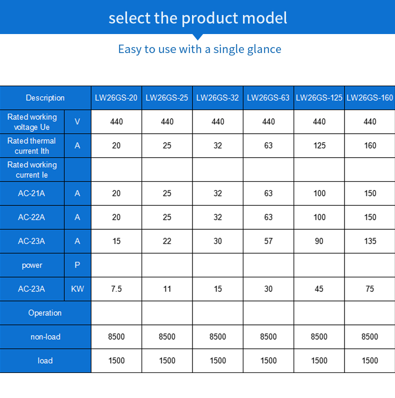 Ampere: 20A, 25A,32A,63A,125A,160A,315A