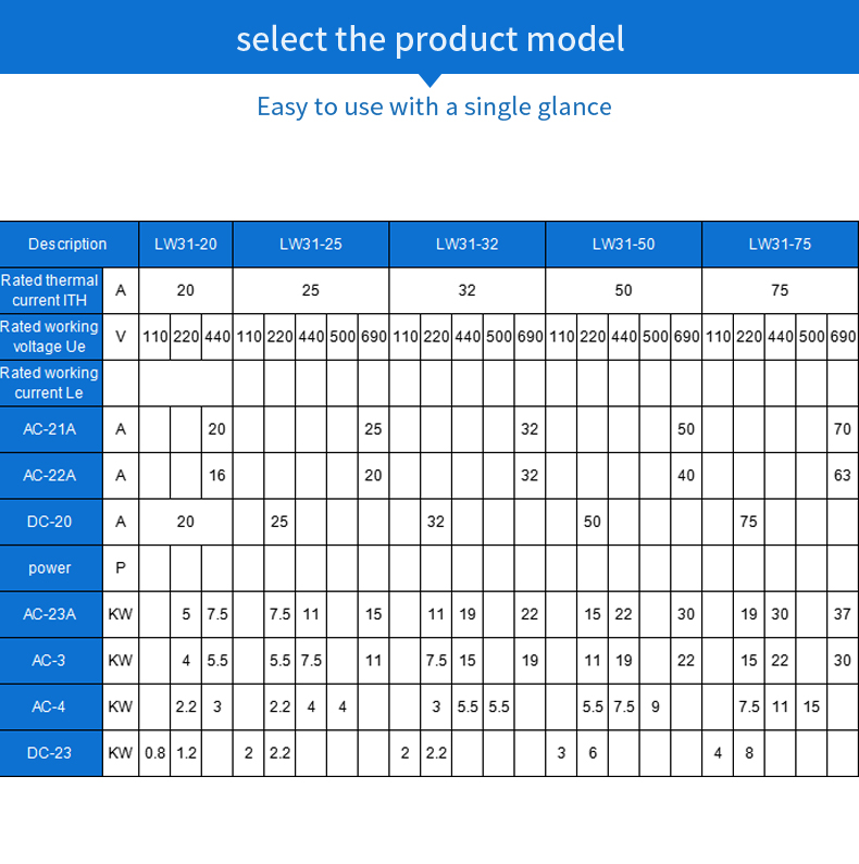 Ampere: 20A, 25A, 32A, 50A, 75A,100A