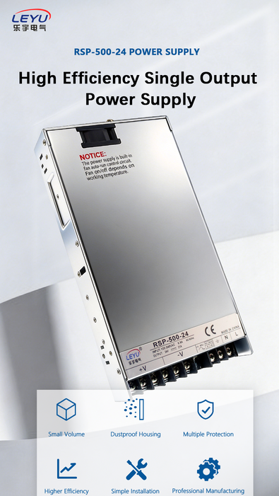 The RSP-500 series consists of single-output, enclosed switching power supplies. These products feature built-in active power factor correction (PFC) and are designed in a low-profile 1U form factor (only 40.5 mm high), making them ideal for space-constrained industrial applications.