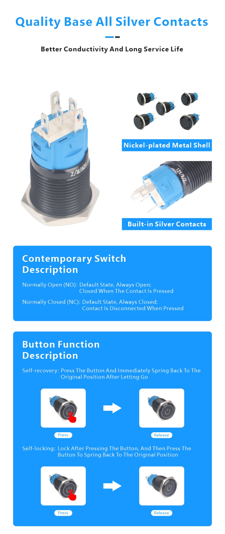 6.Mechanical life: up to 600,000times,it can work at -20℃~55℃;