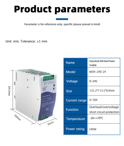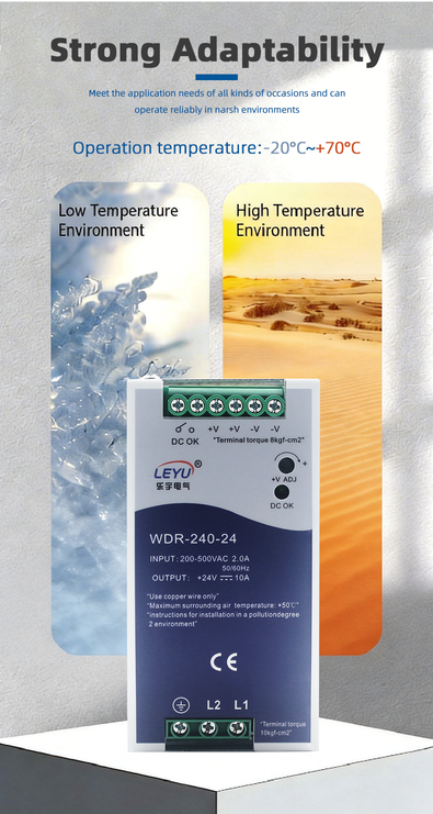 WDR-240W DIN rail power supply delivers 240W with -30℃~+70℃ wide temp range. Available in 24V, 48V, or custom output. Ideal for industrial automation & telecom. 2-year warranty. Get quote today!